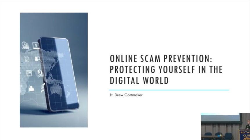 Lt. Drew Gortmaker of the Vermillion Police Department visited the Vermillion Rotary Club to help us recognize and avoid fraudulent activity and scams. Here are a few of the statistics on the importance of this problem that were discussed in the presentation: 1. Online scamming had reported losses of $12.5 billion in the U.S. in 2024. 2. 73% of Americans across all age groups have experienced some kind of online scam or attack. 3. Americans most commonly report that online hackers made fraudulent claims to their credit or debit cards (48%). Click on the image below to view the video of Lt. Gormaker's presentation on the Club's YouTube channel.